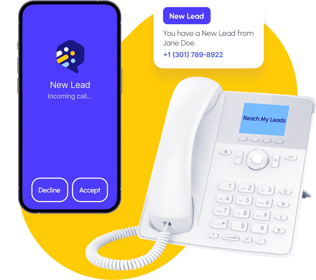 Reach My Leads plays a custom recording with the lead's info and prompts you to press 1 to connect. Your hot new lead instantly gets a call from your business number before they continue shopping around.